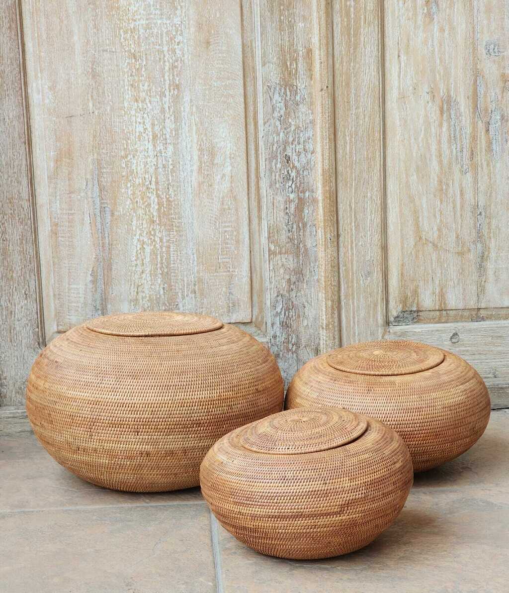RRR432-Cesto Bola de ratan halus con tapa 30x27cm